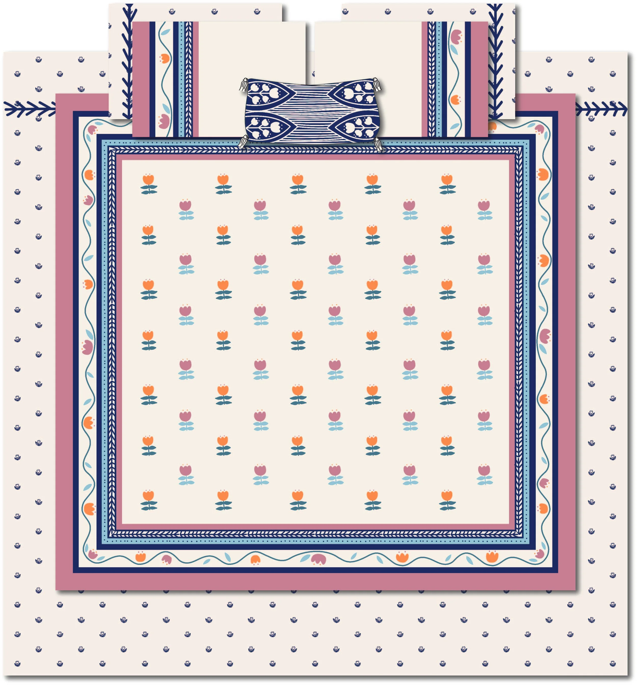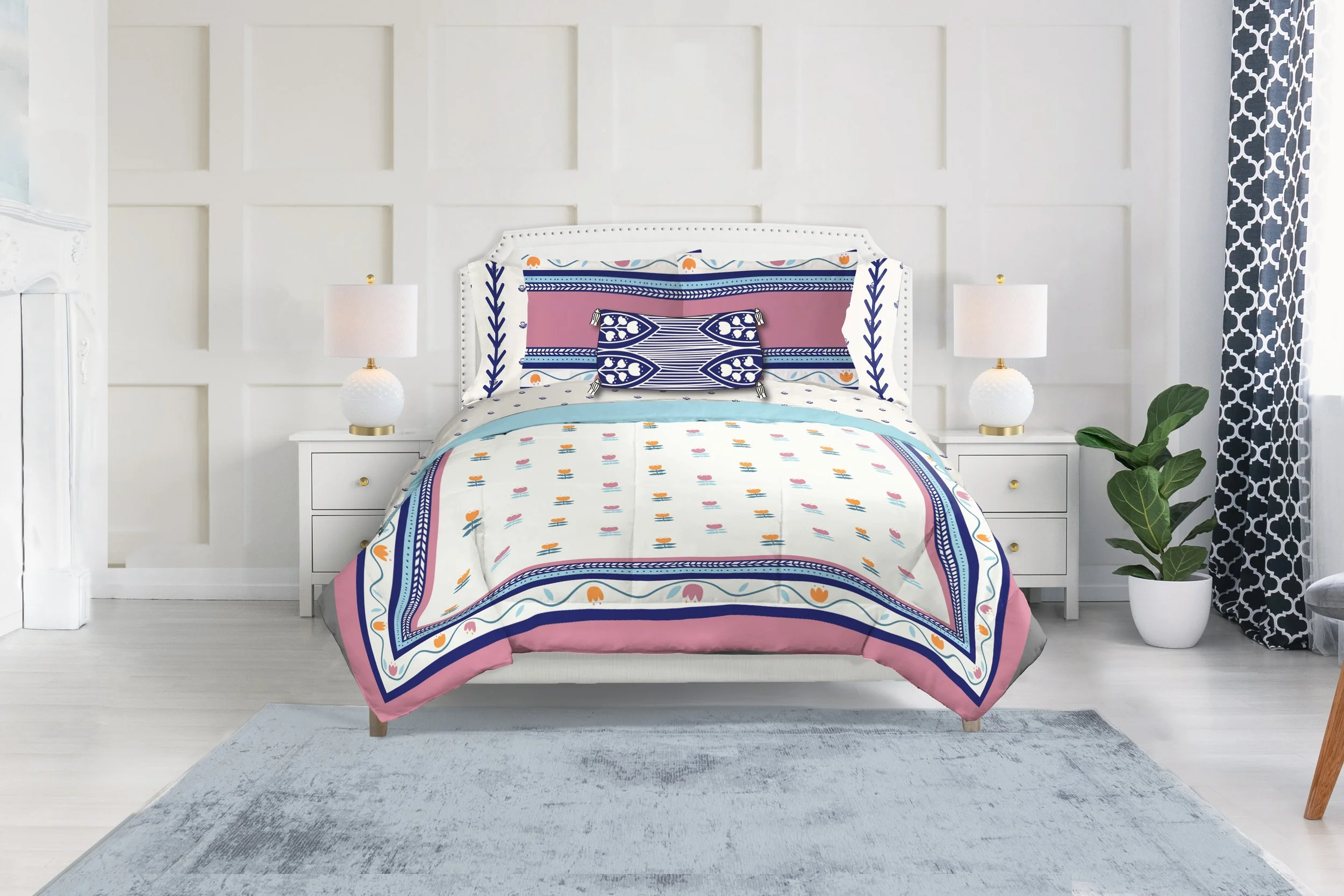 Before my experience working at Jay Franco and Sons, Inc., I hadn’t had any formal education in designing for home goods. This was my first attempt at designing a bedding collection; I found joy in creating all the components necessary for a bed: a comforter, sheets, pillowcases, shams, and decorative pillows.